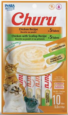 Inaba Churu Grain-Free Lickable Cat Treats are made with real, free range chicken and seafood. Just tear, squeeze and feed right from the tube or i...